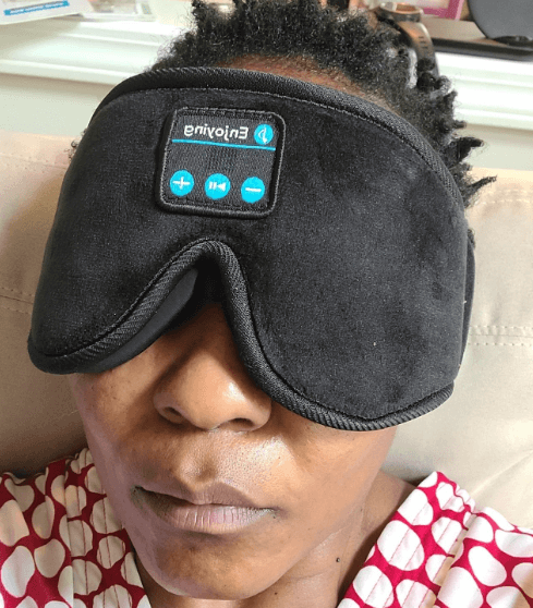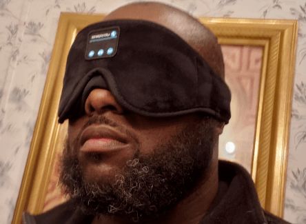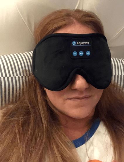 Picture your head on a fluffy cloud, drifting off to sleep. DreamWrap™ PRO is like that – a soft thing that goes around your ears and plays nice sleepy music, it's a 100% blackout sleep mask, and it doesn't hurt.