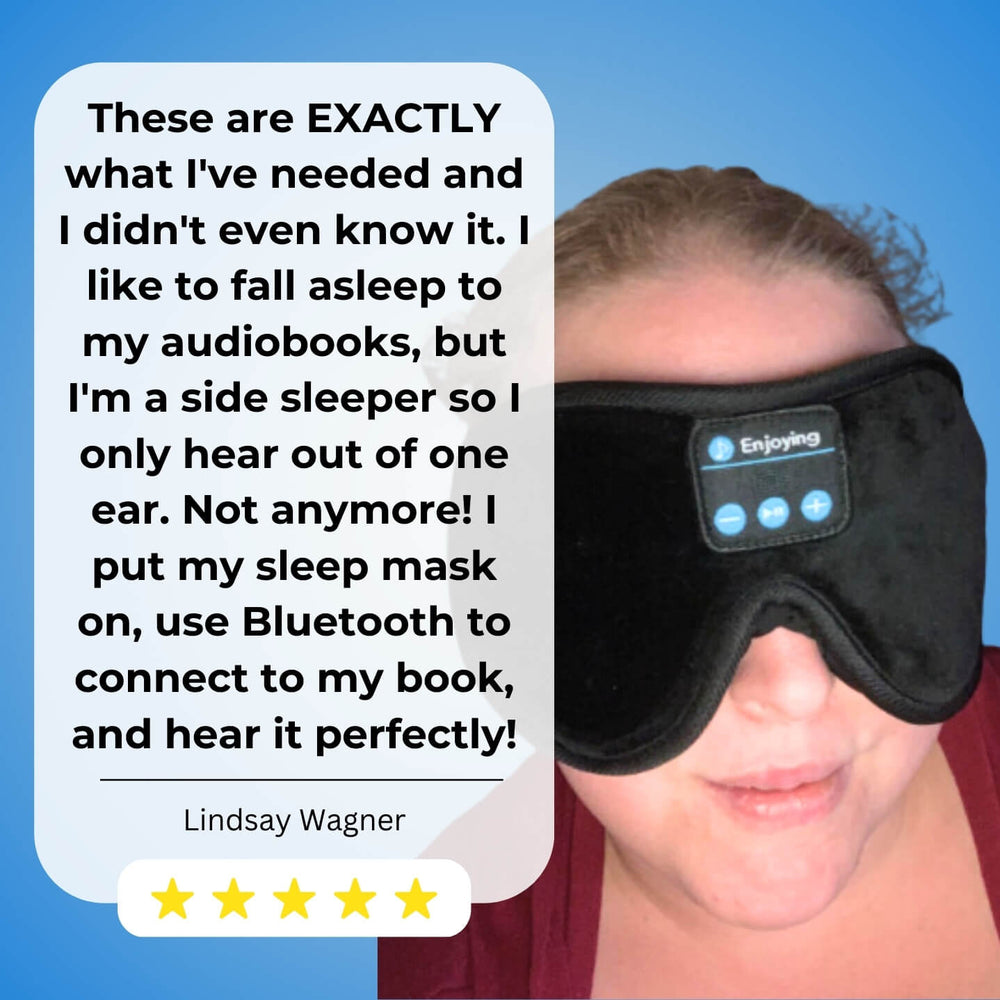 Picture your head on a fluffy cloud, drifting off to sleep. DreamWrap® PRO is like that – a soft thing that goes around your ears and plays nice sleepy music, it's a 100% blackout sleep mask, and it doesn't hurt.